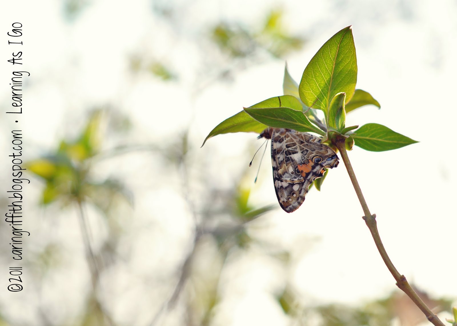 The four of them finally fluttered their way out... one landed in a lilac bush nearby and stayed long enough for me to get a few pictures of it.